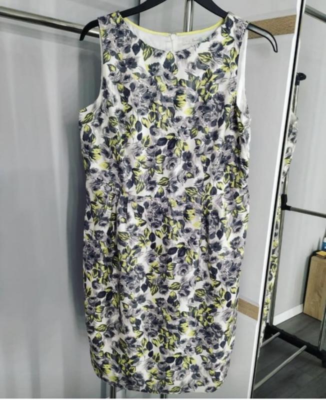 Легкое, шелковое платье Boden. Подкладка по всему платью. Ткань чудесная! Молния на спине, по линии талии присборено. Сзади есть разрез. Длина по спинке 92см Ширина между подмышками 52см Линия талии чуть завышена По линии талии46см От плеча до линии талии 37см Пот 51-52см Поб 60см