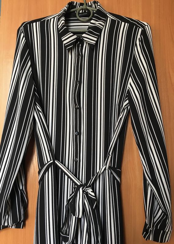 Платье рубашка с длинным рукавом полосатая в полоску чёрную белую