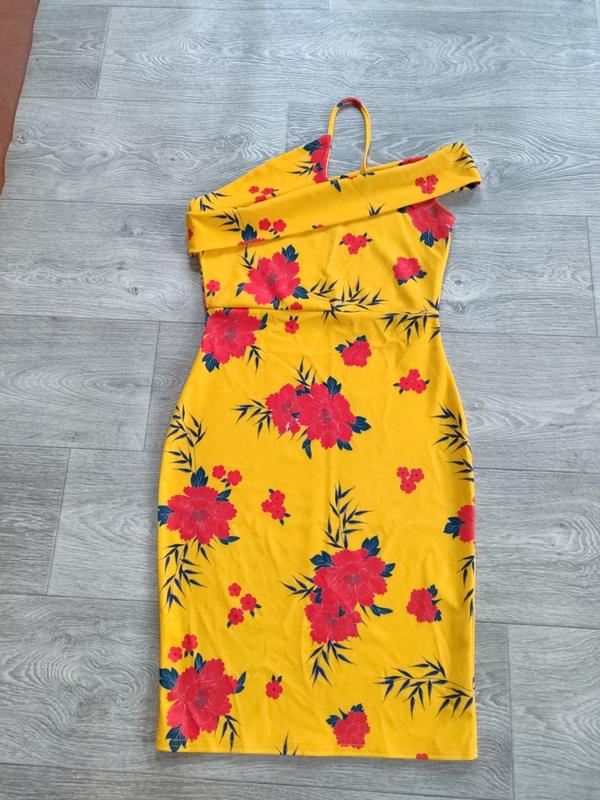 Яркое платье,хорошо тянется, прикольно покроенные плечи, длина 98см,грудь39см,талия 35см,бедра 43смм