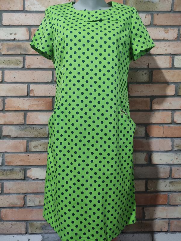 Стрейч-коттон, чуточку тянется.Есть карманы. По спинке молния. Реальный цвет фисташка+темно-синий. Нова Размер указан XXL но платье маломерит, ориентируйтесь на замеры длина 95 ОГ 100 ОТ 88 ОС 106 плечи 37