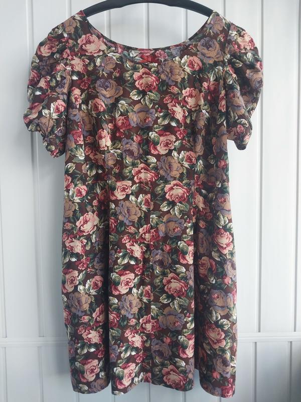 Вказано 18 розмір. Спинку сукні можна стягнути шнурівкою. Заміри в спокійному стані: Напівобхват грудей (від пахви до пахви): 55 см Напівобхват по талії: 52 см Напівобхват по стегнам: приблизно 72 см Напівобхват по низу: 92 см Довжина (від найвищої точки плеча): 88 см Склад: 100% віскоза