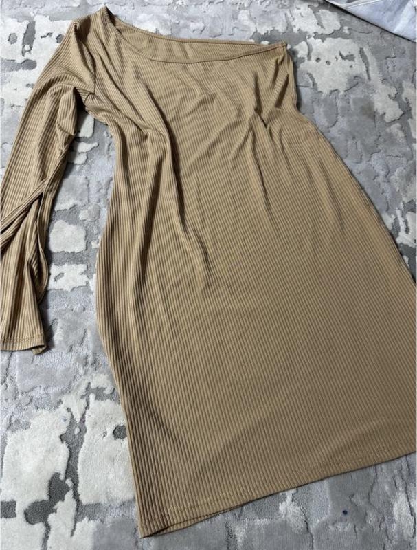 Очень красивое платье на одно плечо песочного цвета более коричневый нож на фото SHEIN L-XL Длина платья -93 Длина рукава - бое разрез на фото виден Полуобхват груди 45 Пол обхват бедер 48