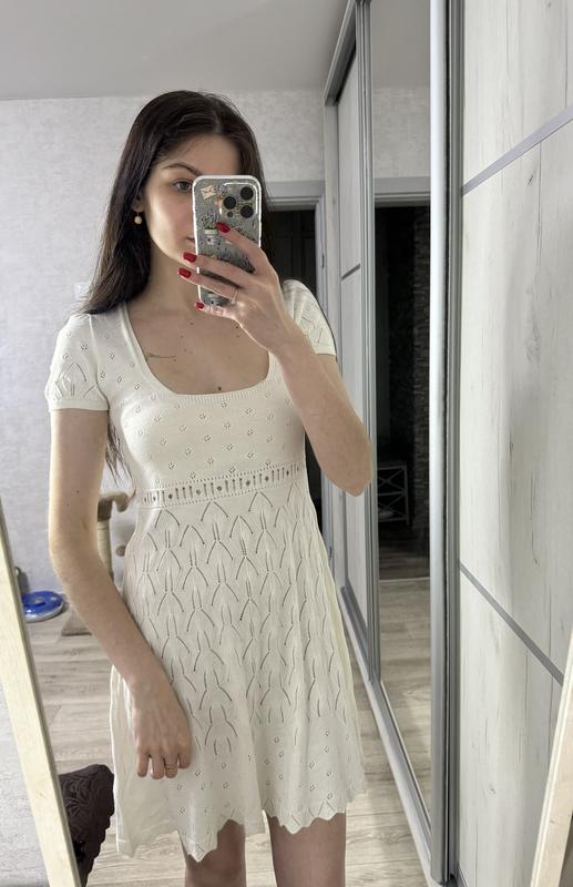 Колір молочний. По бірці розмір С. Довжина 86 см, пог 37 (тягнеться до 43), пот 36 см. Вдягнено на параметри 86-66-87, зріст 172
