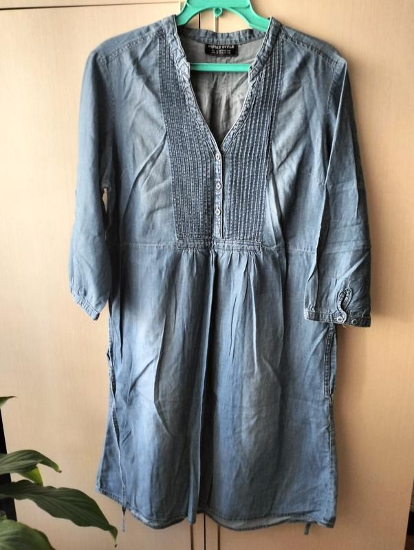 Размер 42 Замеры: ПОГ- 56, ПОТ- 52,ПОБ- 60, плечи -42, рукав-45, длина -95.Може подойти и для беременных.