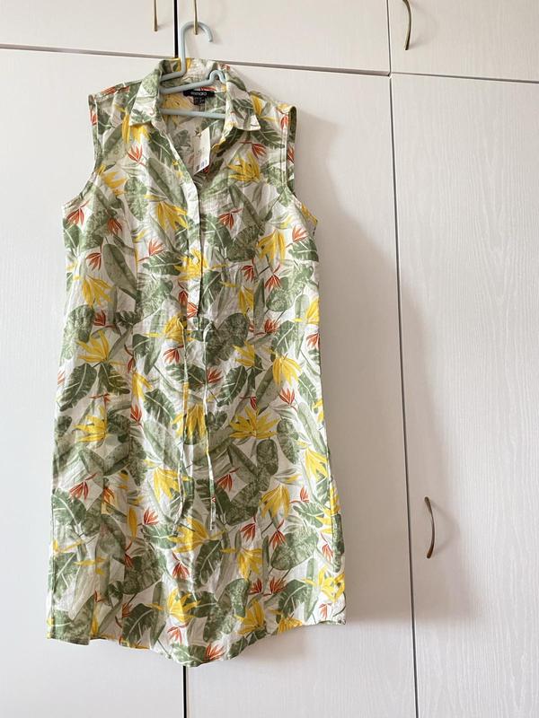 Платье рубашка Esmara прямого кроя, на поясе можно затягивать.С красивым летним принтом. Дорогий и качественный состав ткани: 55% лен, 45% хлопок. Идеальное платье на каждый день👌 Можно носить как с каблуками, так и с спортивной обувью, универсальная модель. Новая, с биркой. Размер 40/38/10, М Длина 95 см Пог 47 см Пот 46 Поб 53 низ 56 см Плечи 35 ДОСТАВКА: новой по почте в день оплаты или на следующий день. Укр по почте - 2 раза в неделю (по договоренности). Подписывайтесь на обновление - они есть постоянно)