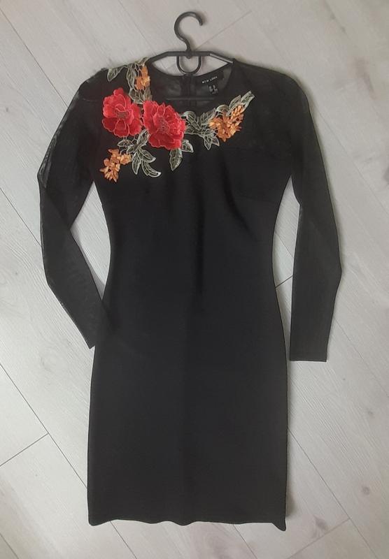 платье с красивой вышивкой цветов, рукава и зона плеч прозрачная сеточка, длина выше колена, ширина по плечам 34 см, длина рукава 50 см, на объем груди до 90 см, ширина по талии 35 см, длина платья 85 см
