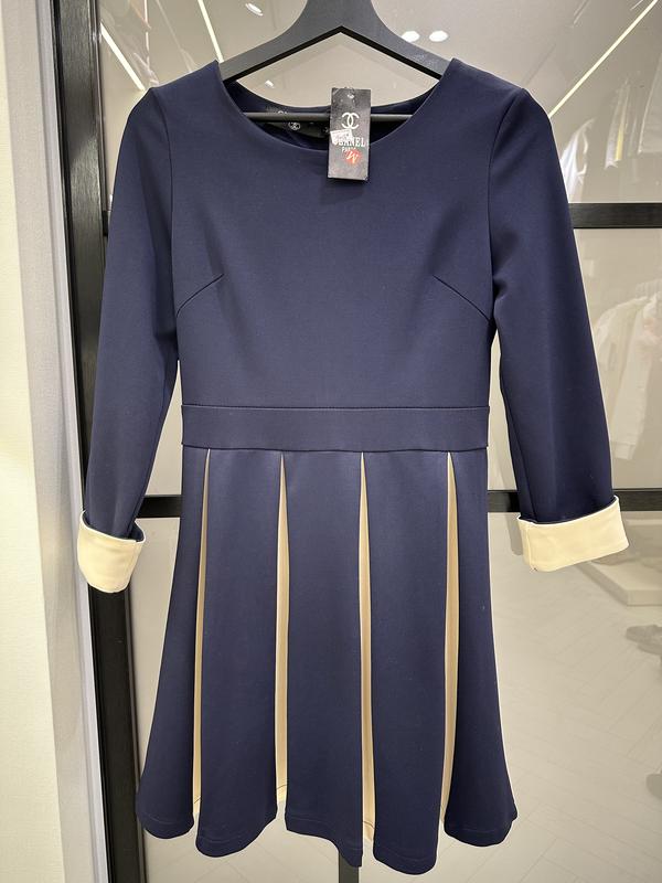 Нова жіноча сукня темно-синього кольору з плісірованою спідницею.