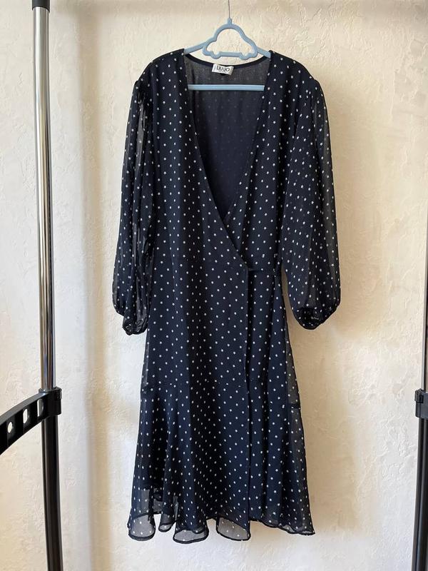 Платье на запах известного итальянского бренда LIU.JO. Платье сзади длиннее ножа спереди (95 и 90 сантиметров соответственно). На теле есть подкладка, прозрачная только на руках. Продаю из-за того, что на меня маленькая, поэтому фото на теле также не могу сделать🙃