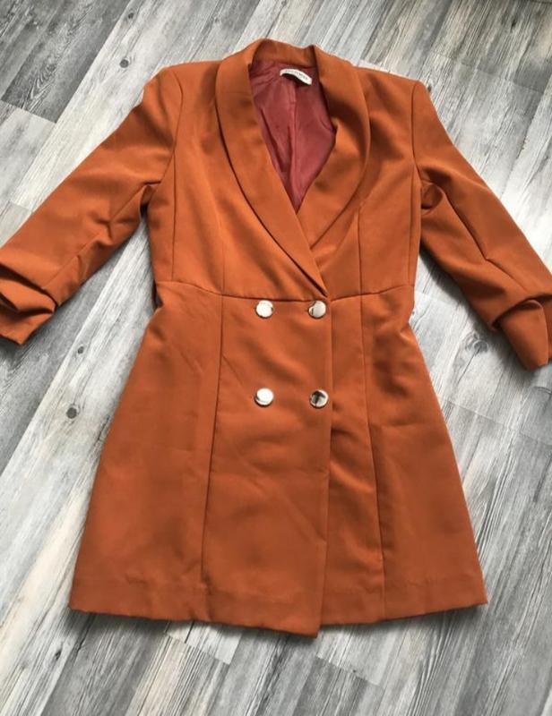 Отличное платье пиджак На подкладке Есть шлевочки для пояса, но можно и без. Рукавчик присборенный Золотистая фурнитура Плечи -39 Пог-45 Пот-40 Поб-51 Длина -83 Рукав-48