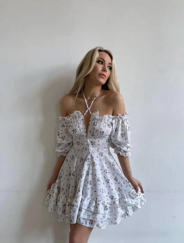 Мод 363in Размер: 42-44, 46-48 Тканина: софт Цвет: белый, голубой Нежное платье в цветочном принте придаст Вам весеннего настроения 🌷