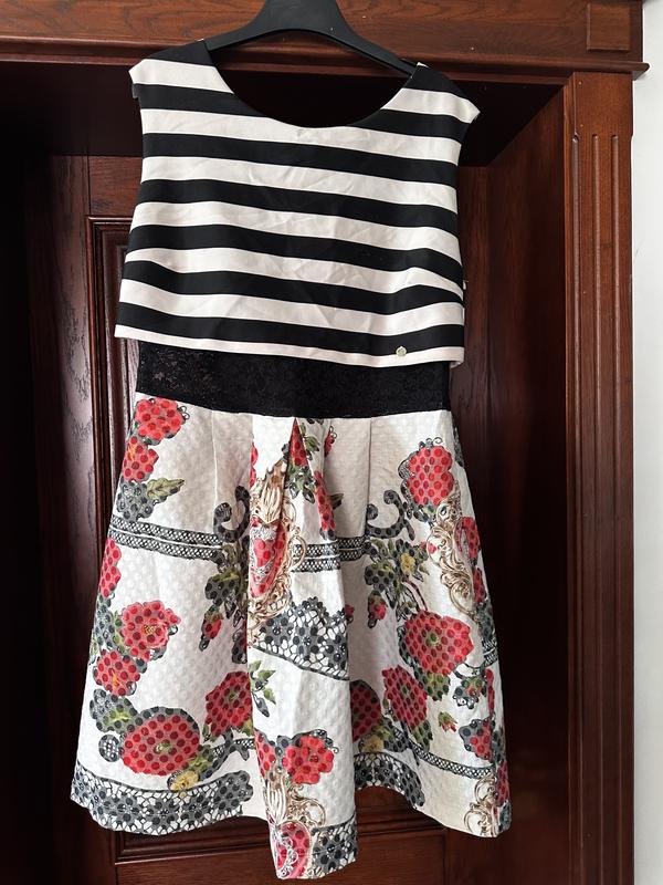 Короткое элегантное платье итальянского производителя. Высокая талия, юбочка в цветочный принт. Без рукавов и вырезов. Размер L Италия