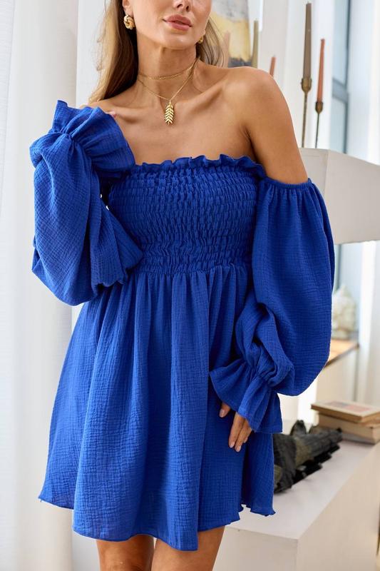 Новинка, которая уже в наличии🕊 Бавовняна сукня 🤍 Модель 5033 ▫Ткань: муслин, хлопок 100% ▫Размерный ряд: 42-46, 48-52 🏷810 грн Наши фото Реал Муслиновое легкое платье с рукавами воланами, утягивающей резинкой, которая визуально уменьшает талию<unk> Очень красиво подчеркивает формы и ложится по фигуре🌸
