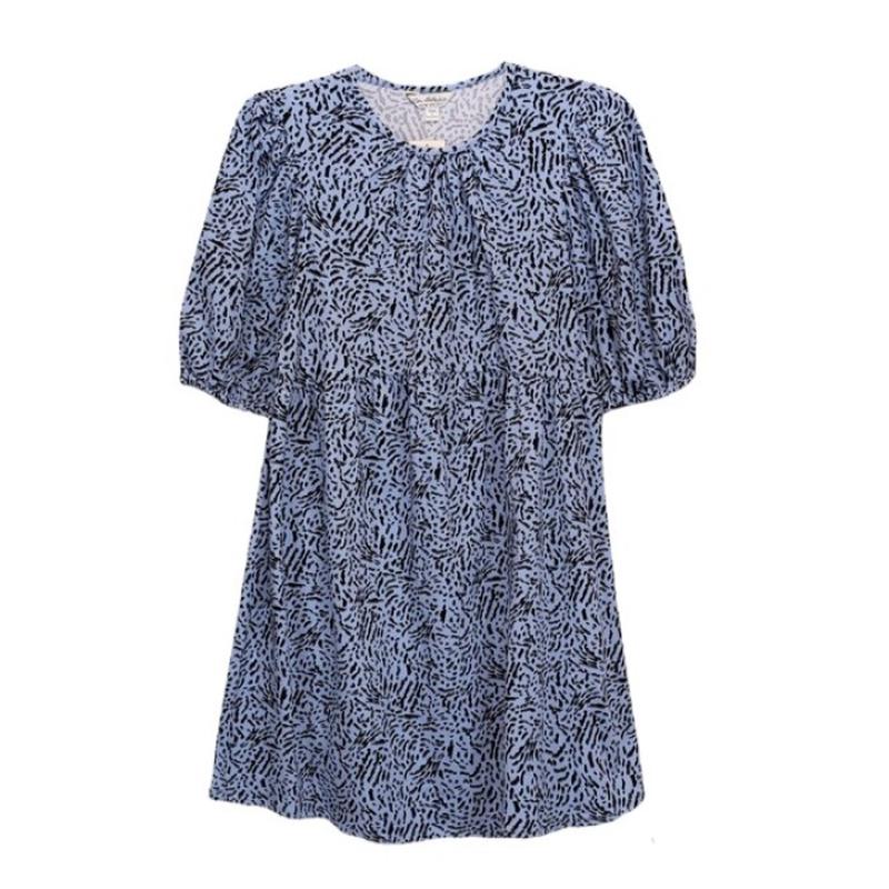Платье мини летнее женское Miss Selfridge Бренд: Miss Selfridge; Сезон: Летний; Длина: Мини; Фасон платья: Платье трапеции; Цвет: Синий; Длина рукава: С короткими рукавами; Стиль: Повседневный (casual); Силуэт: Расклешенные; Материал: Хлопок, Эластан; Принт: Малюнок; Страна производитель товара: Бангладеш; Склад: 94% бавовна, 6% еластан; Фасон рукава: Рукава фонарики; Особенности модели; Без застежки.
