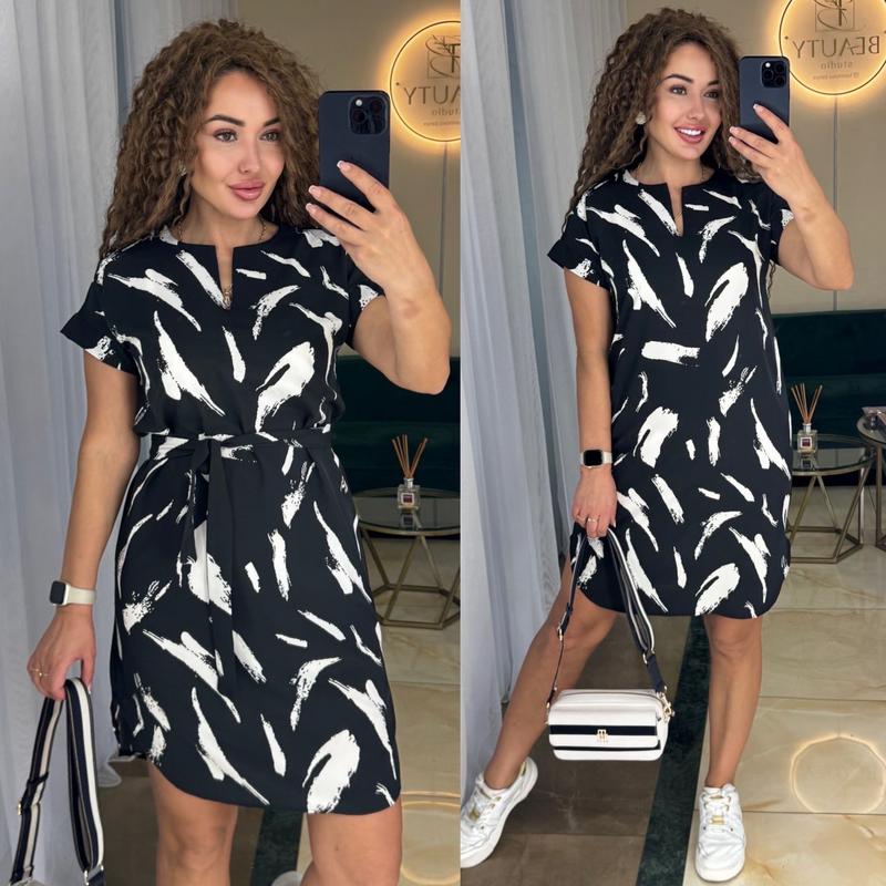 Платье женское Арт. 20Соф Размеры: 1(42-46) 2(46-48) 3(48-50) 4(50-52) Описание: платье с поясом, не приталенное, разрезы по бокам Длина 95-97 см Рекомендуемые замеры: -42-46 ОГ 94 ОС 99 - 46-48 ОГ 98 ОС 103 -48-50 ОГ 102 ОС 107 -50-52 ОГ 106 ОС 111 Тканина: Софт
