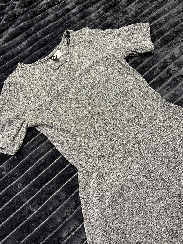 Базовое сереное платье в рубчик под дорогой образ, красиво с каблуком и кроссами Размер С-М, хорошо тянется, отличное состояние без дефектов Ложится хорошо по фигурке Фирменная
