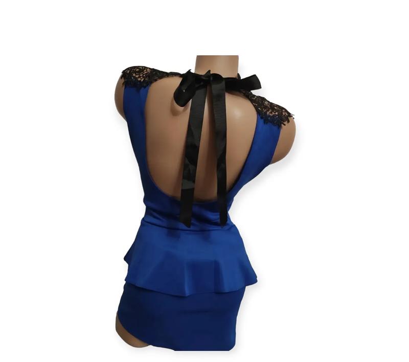 🔹 Елегантна синя сукня від First Woman у відмінному стані! 🔹 Розмір S-M. Довжина – 84 см, ПОГ – 38 см, талія – 33 см, стегна – 41 см. Модель із ніжним чорним мереживом зверху та красивим баскою — підкреслює фігуру та додає вишуканості. Ідеальний варіант для вечірки, святкування чи побачення 💙 👗 Ціна: 230 грн 👗