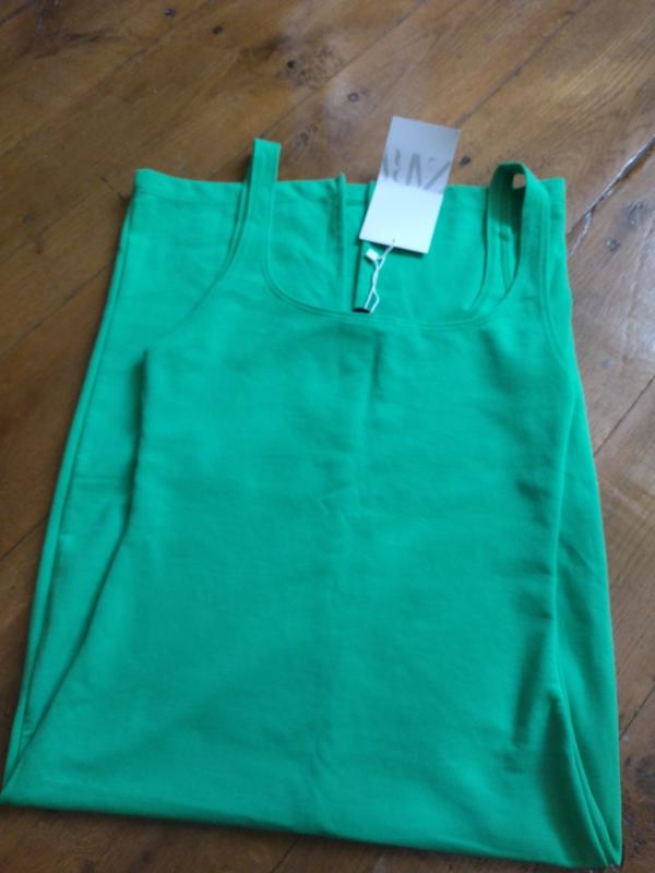 Стильное приталенное платье Zara в s размере. Красивый вырез. Цвет на фото, к сожалению, искажен:(. В реале фото сочной зелени. Наиболее похожий цвет на фото с ценником