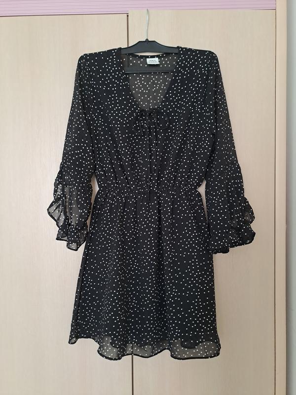 Плаття в ідеальному стані . Тканина легка,принт горошок. Є підкладка. Розмір 34-36