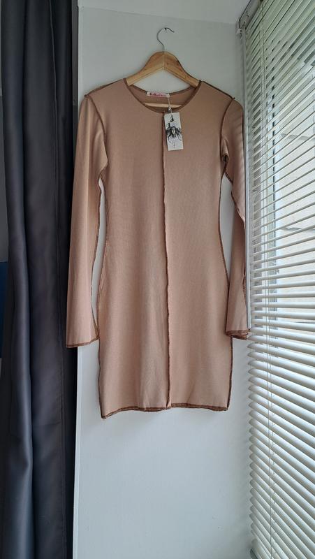 Мини платье в стиле casual с контрасными швами наизнанку💔 Приталенный крой. Перчатки с разрезами. ФОТО РЕАЛ Заказывая новую в интернете, не собрался размер 📌ЗАМІРИ ВИРОБУ (добре тягнеться): Длина 82 см Рукав 74 см ОГ 84-94 см ОТ 62-72 см ОБ 90-100 см