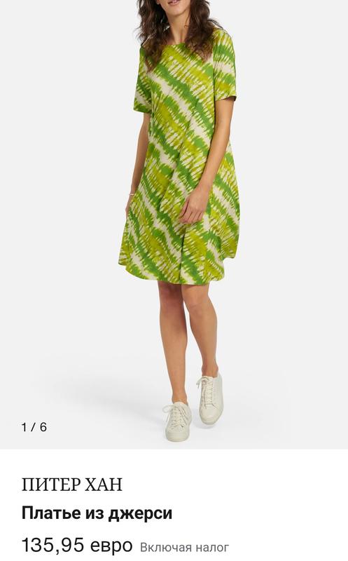 Яркое платье из Джерси Peter Hahn,p.D.36.Стан новое, бумажной этикетки нет, витрина, наследов примерки нет.Состав:95%вискоза,5%эластан.Сукня имеет а-силуэт,2 потайные карманы.Вдетое на S.Замеры: пог-48см,пот-59см,низ-95см,рукав-25см,плечи-36см,длина-93см.