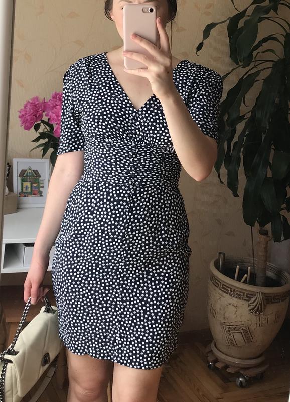 Плаття в горох Вінтаж Є нюанс, ззаду сукні внизу, показано на фото, Розмір вказаний 38 Довжина 87 см Груди 44 см Талія 34 см Плечі 40 см