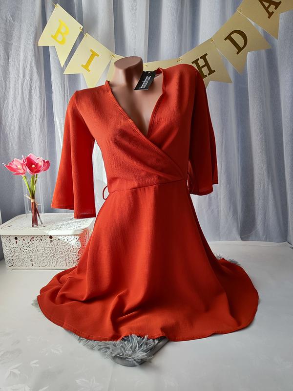 🔻 290 грн, етикетка Новое платье BOOHOO из воздушной жатки. Немного тянется Поліестер, еластан S-M Длина 83 Плечи 33 Рукав 37 Пог 40+ запах Пот 37 Поб 67