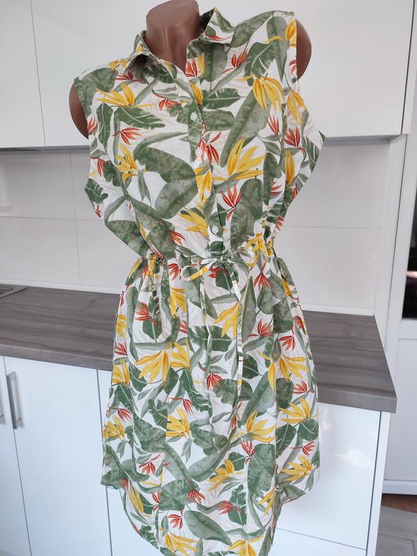 Длина изделия 98 ПОГ 55 ПОТ 53 ( уменьшается поясом) ПОБ 58 55% льон, 45% бавовна