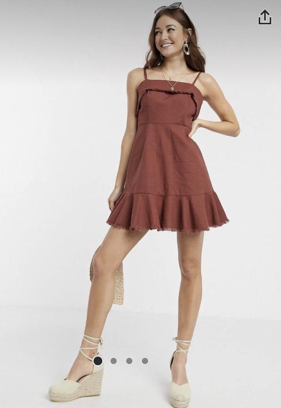 Отличное льняное платье ASOS в размере M. Тонкие регулируемые бретели, необработанные края, на груди косточки, красиво формирующая силуэт. Стан - идеальный