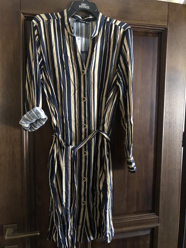 Полосатое платье, натуральная ткань, новая. Размер 40 ( европейский). Полоска бежевая и темно- синяя, близка к черному