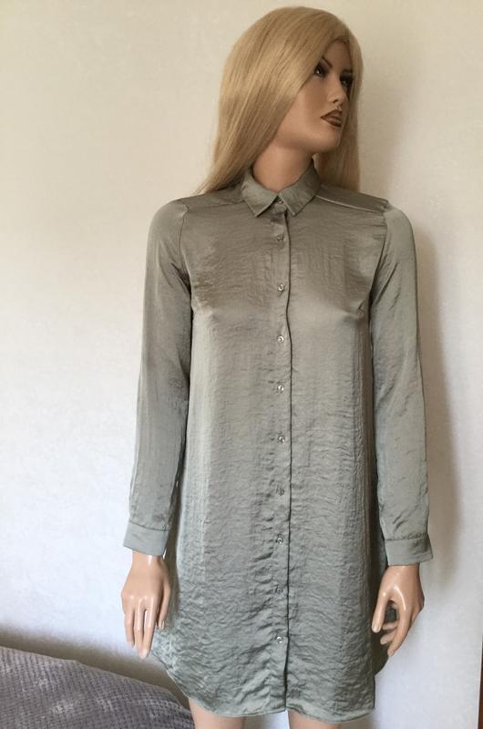 Сатинова сукня сорочка оливкового кольору з вишивкою atmosphere р. xs
