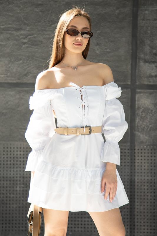 Белое платье с корсетом на завязках короткое платье с пышной юбкой