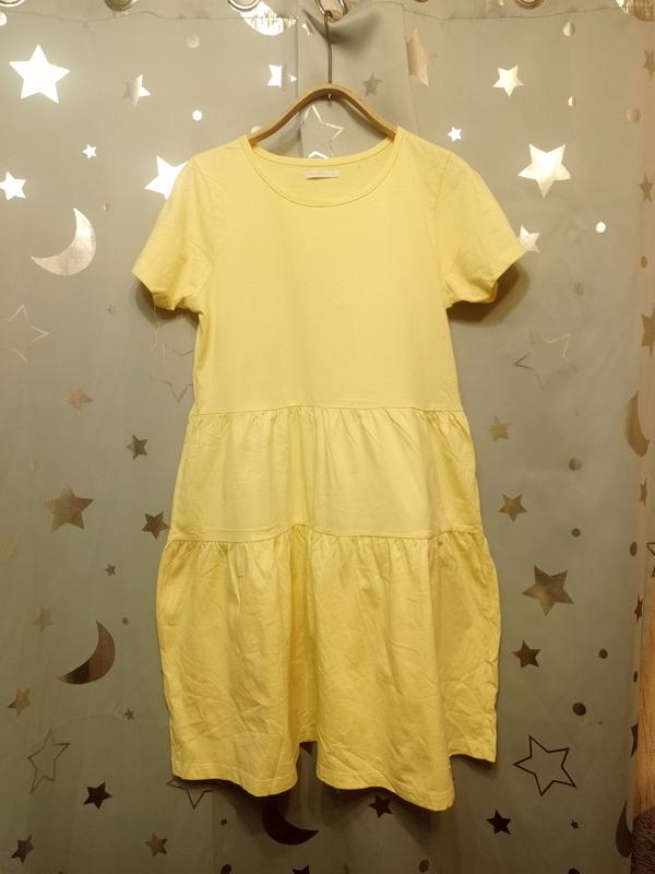 Красивое легкое летнее платье из мягкого материала. Длина всей 90см, пот 44, пог 45, размер L, хорошо тянется, расширяется к низу. Красиво сидит на теле.