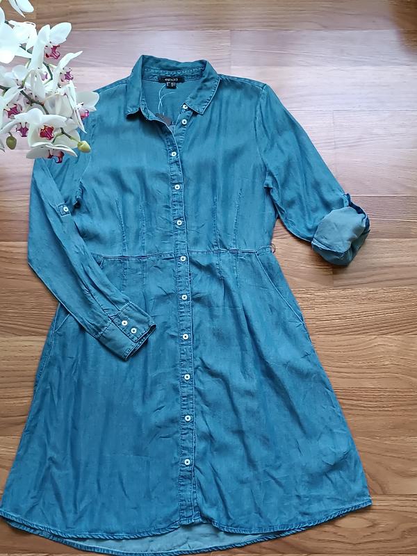 Очень легенька сукэнка! Рукава подкатываются и застегиваются на пуговицу. Имеет карманы! Не тянется. Замеры: НОГ - 50 см; НОТ - 40 см; НОС - 55 см; Длина - 93 см; Рукав - 63 см.