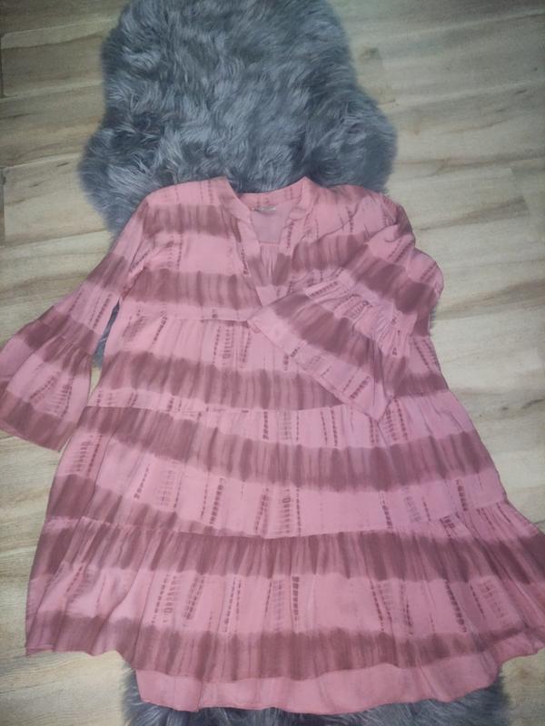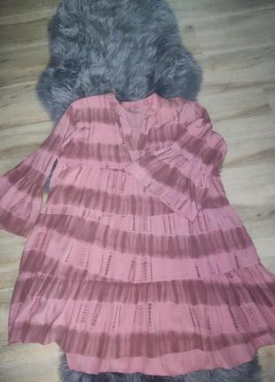 Итальянское платье из натуральной ткани. Очень легкое, не парит, продувается, не светится. Длина по спинке -85, плечо-13, длина рукава -50, Пог-63, Поб-84, низ-134 (половина). Свободного кроя. Подойдет как на размер от XL к XXXL