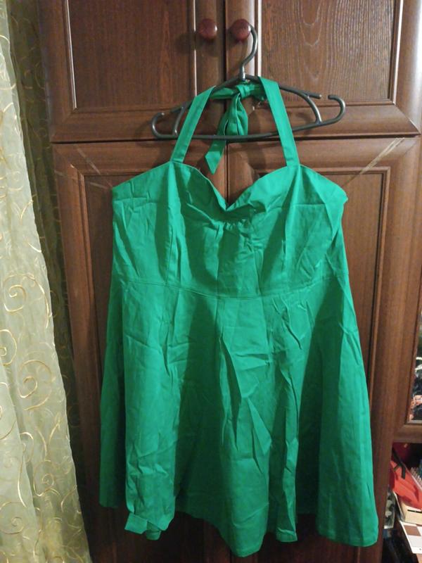 Платье большого размера, новое,бирки нет-оторвалось, но еще крепежи от бирки осталось. Замеры: пог-53( тянется до 70, на спине резинка) талия обрезная-57/63 полуоберт бедра свободные до 100( полуоберт) длина -90