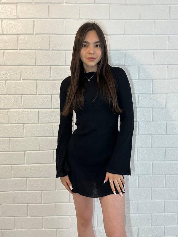 Короткое платье из муслина с вырезом на спине с длинными рукавами