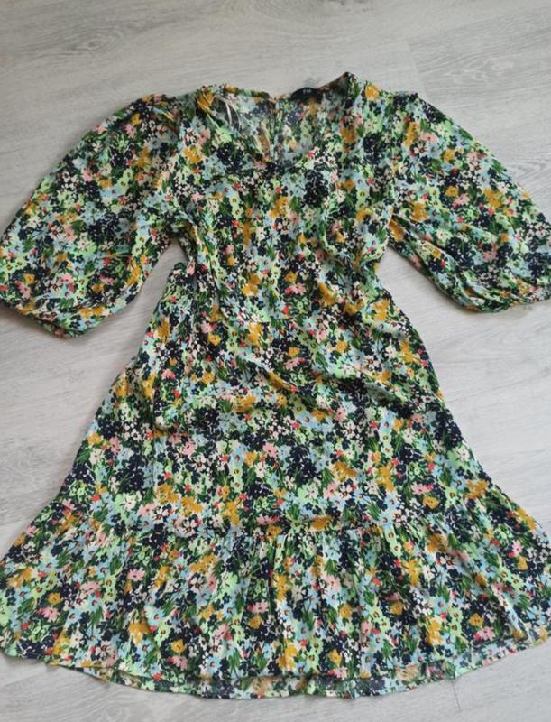 Віскозна сукня яскравого кольору в ідеальному стані. Тканина не просвічує, має пишний рукав на резинці. На спині застібається на гудзик. Розмір вказано 16. ПОГ-54, Довжина -90