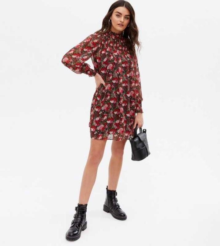 Шифоновое мини платье в цветочный принт. Легкое, хотя просвечивающееся, но очень симпатичное летнее платье. Размер указан 12. Бренд New Look. (20)