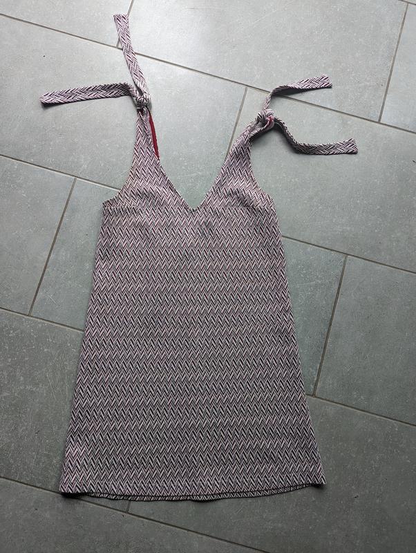 короткое платье с завязками и с глубокими вырезами спереди и сзади. очень эффективное и классного качества