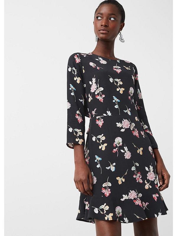 Чорна віскозна міні сукня з квітковим принтом і відкритою спинкою mango