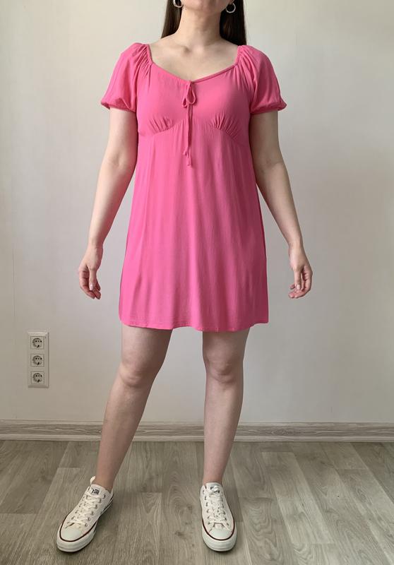 Сукня рожевого кольору у розмірі М-Л У складі 100% віскоза Довжина від плеча 88 см, напівобхват грудей 48 см Стан ідеальний