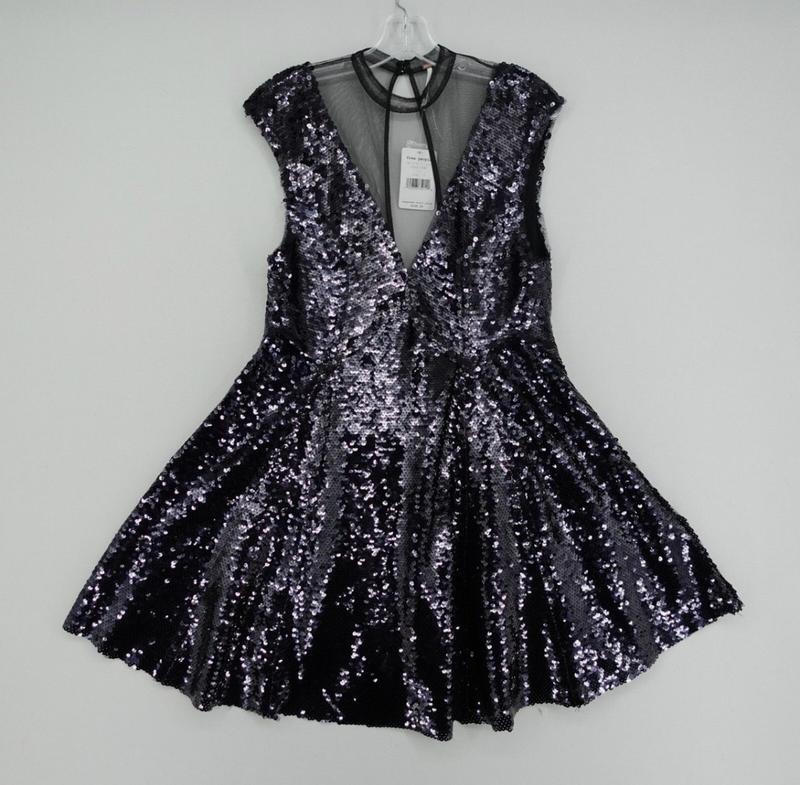 Красива чорна сукня з відкритою спиною в паєтки. Сукня Free People середнього розміру "Dance Til Dawn" з блискітками, чорного кольору, з глибоким V-подібним вирізом.