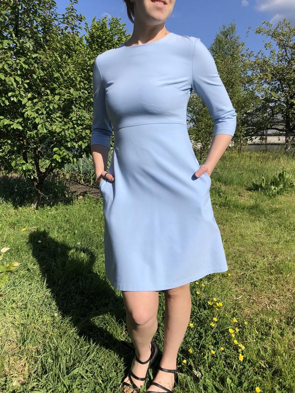 Голубое платье с карманами и четвертыми рукавами