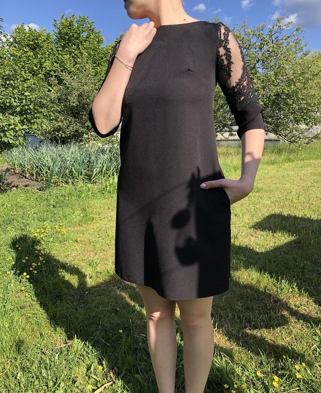 Черное платье с карманами и прозрачные рукава