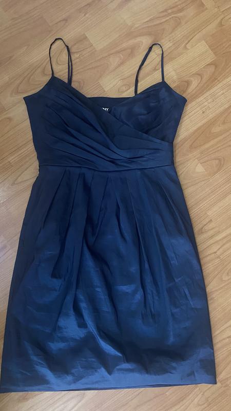 Женское платье DKNY в синем цвете из натуральной ткани Рами. Платье имеет карманы с двух сторон. Все замеры находятся на фото, размер по бирке - 4(s).