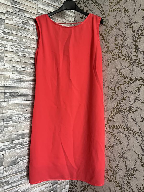 Платье выполнено из качественного шифона (снизу есть подкладка), также спинка чуточку открыта и есть рюши. Цвет ярко коралловый. Одягали один раз на свято. Ог46