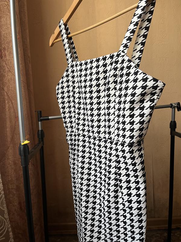 Стильное платье в гусиную лапку На замочку Размера нет, одето на: 0Г:70 ОТ:63 ОБ:92 100% полиэстер, shein Есть немного нитей, добавила некоторые фото *Разгрузкой гардероб, все вещи в нормальном состоянии, некоторые имеют нити, нуждаются в стирке