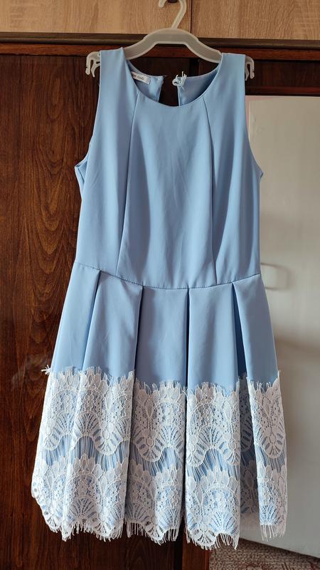 Длина всего платья 87 см. Полуобхват Грудь 42 см Полуобхват Талия 37 см. Без подкладки, держит форму, есть связывающийся пасок на 2 стороны (белый/голубой)