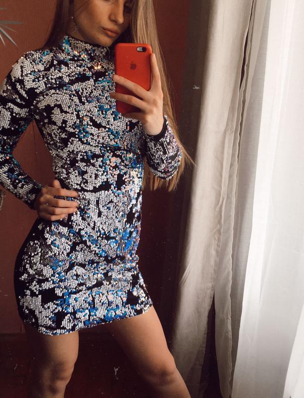 Эффектное платье от известного бренда Parisian Collection. Сторону паеток можно менять, спереди все в блестках, сзади полностью чёрное. Размер -Xs.