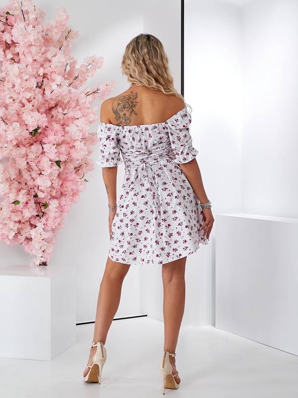 В наличии новинка❗️ летнее легкое платье 🌸 с маленьким руковым фонарик на резинке, с затяжкой на комди, юбка полусонцеклеш, спинка затягивается на шнуровке 🎀 Арт. 10485 Тканина: принтований софт Цвет: белый в малиновый цветок; белый в черный цветок Размеры: с-м; м-л Размер: с-м(42-44) Об.. гр. до 92 см. Об.талии до 70 см. Длина 83 см. Размер: м-л(46-48) Об. гр. до 100 см. Об.талию до 80 см. Длина 84 см.